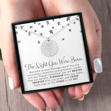 Celebrate her 12th birthday with this custom engraved charm necklace with a Star Map designed...