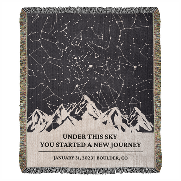 Create a unique sobriety anniversary keepsake with our custom star map by date Woven Blanket....