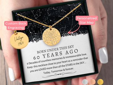Celebrate her milestone birthday with this custom engraved charm necklace with a Star Map designed...