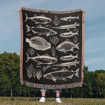 Vintage Freshwater Gamefish Woven Blanket | Rustic Cabin Lodge Decor | Fishing Wall Art Tapestry...