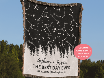 Celebrate love with this personalized Anniversary Star Map Blanket. This beautiful Heirloom Woven Blanket is...