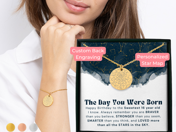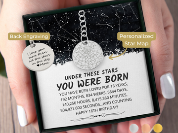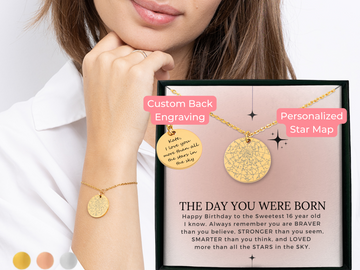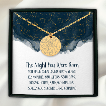 Personalized Star Map Necklace with Paperclip Chain – A Stunning 16th Birthday Gift for Girls...