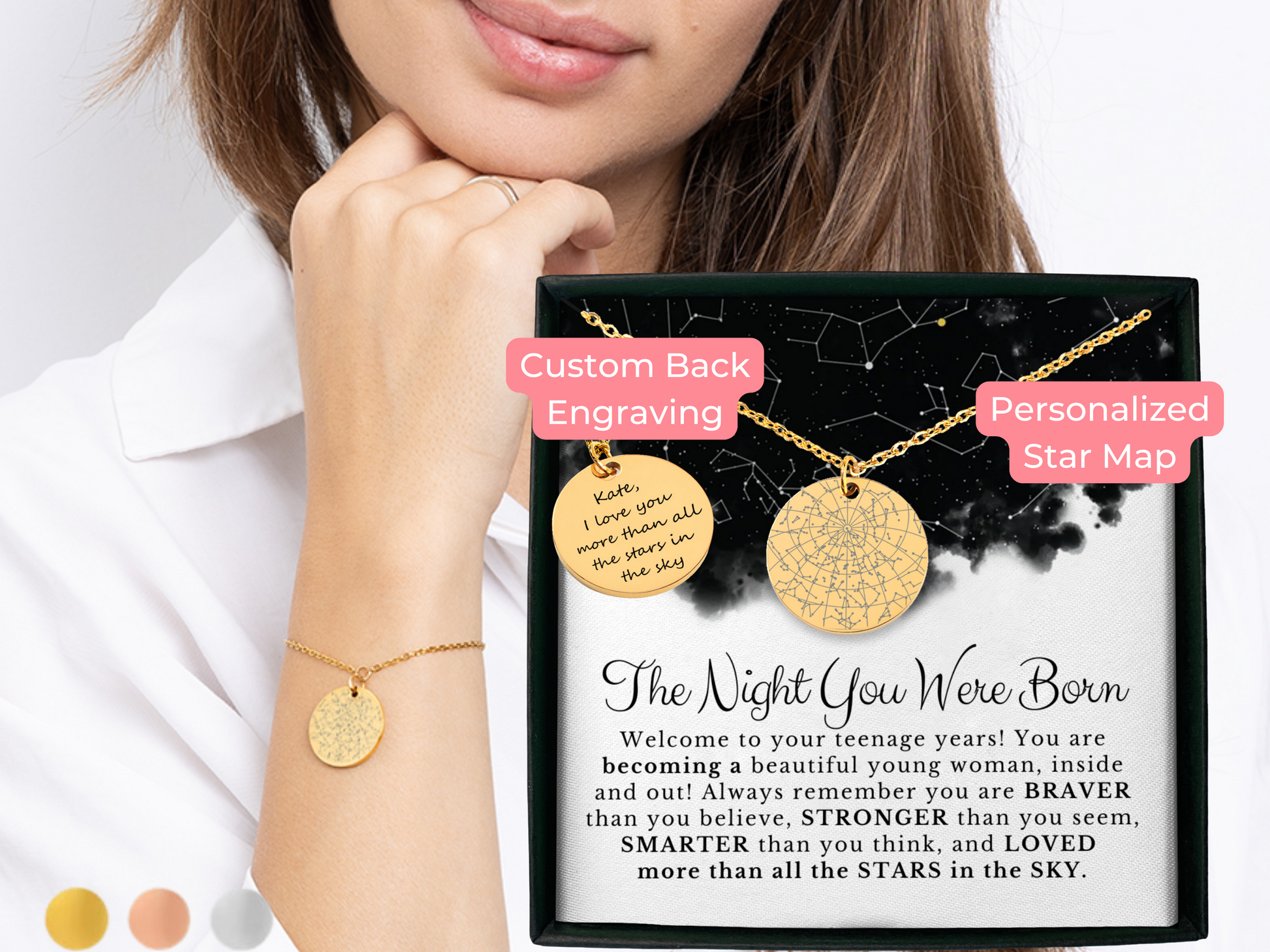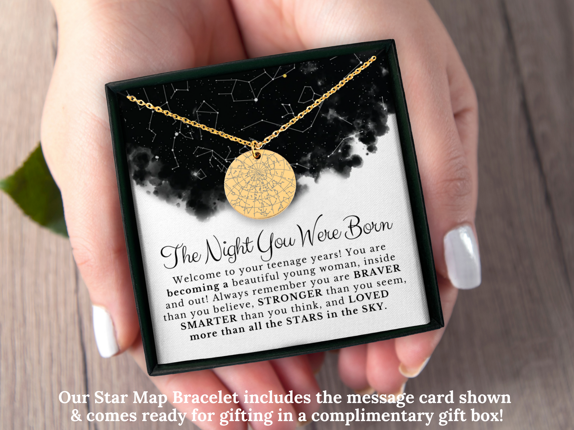 13th Birthday Bracelet, Custom Star Map By Date Milestone Bracelet, Thirteenth Birthday Personalized Gift for Granddaughter, Niece, Daughter