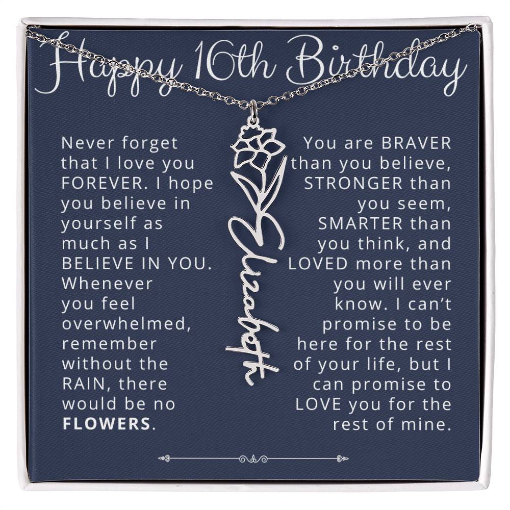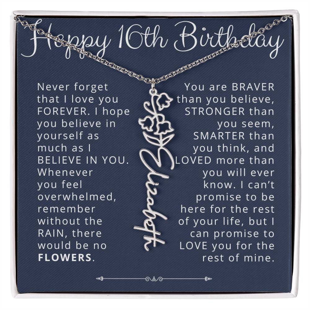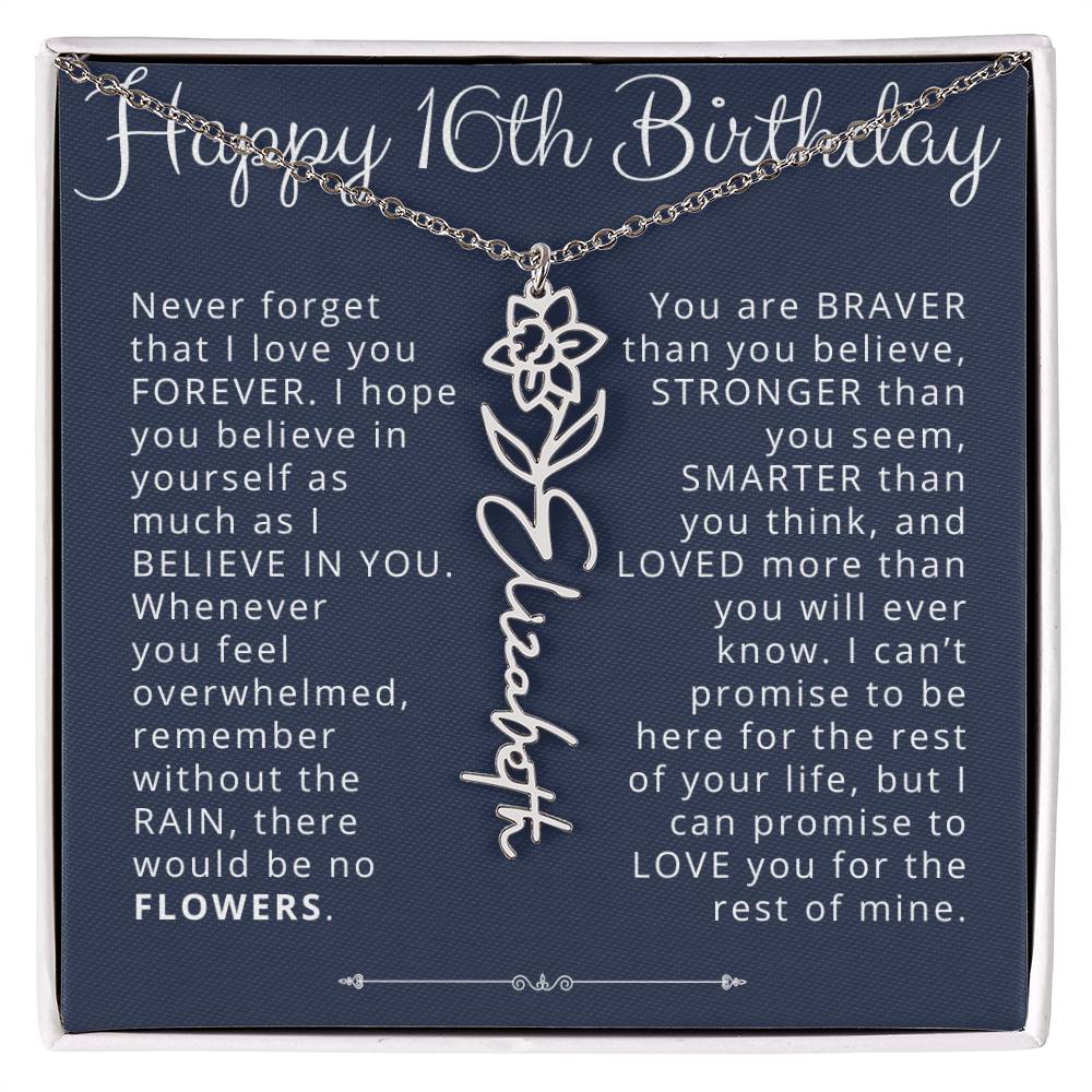 16th Birthday Gift Birth Flower Name Necklace for Daughter, Granddaughter, Niece