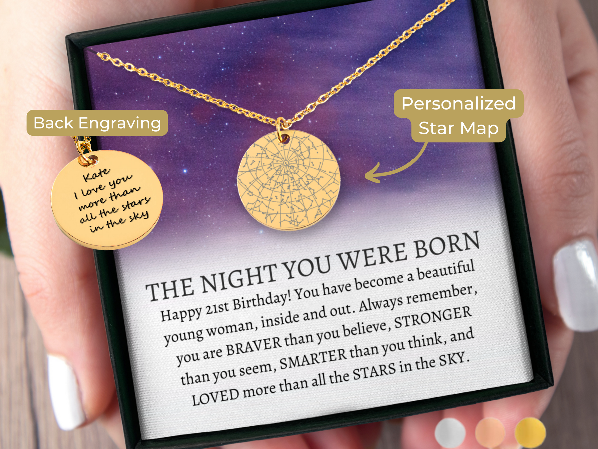 21st Birthday Gift for Her Custom Star Map Necklace