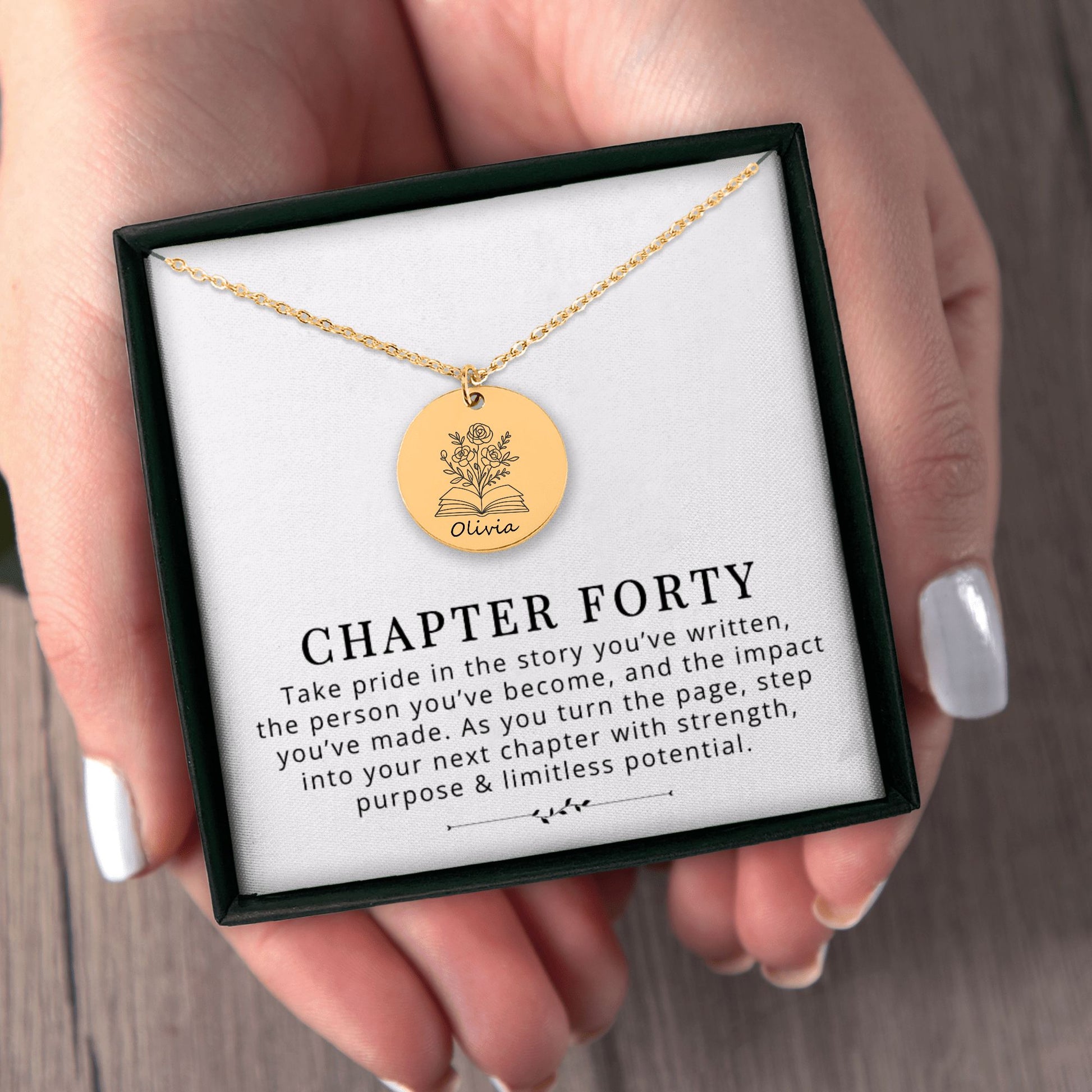 Chapter 40 Necklace – 40th Birthday Gift for Her with Personalized Name & Optional Back Engraving