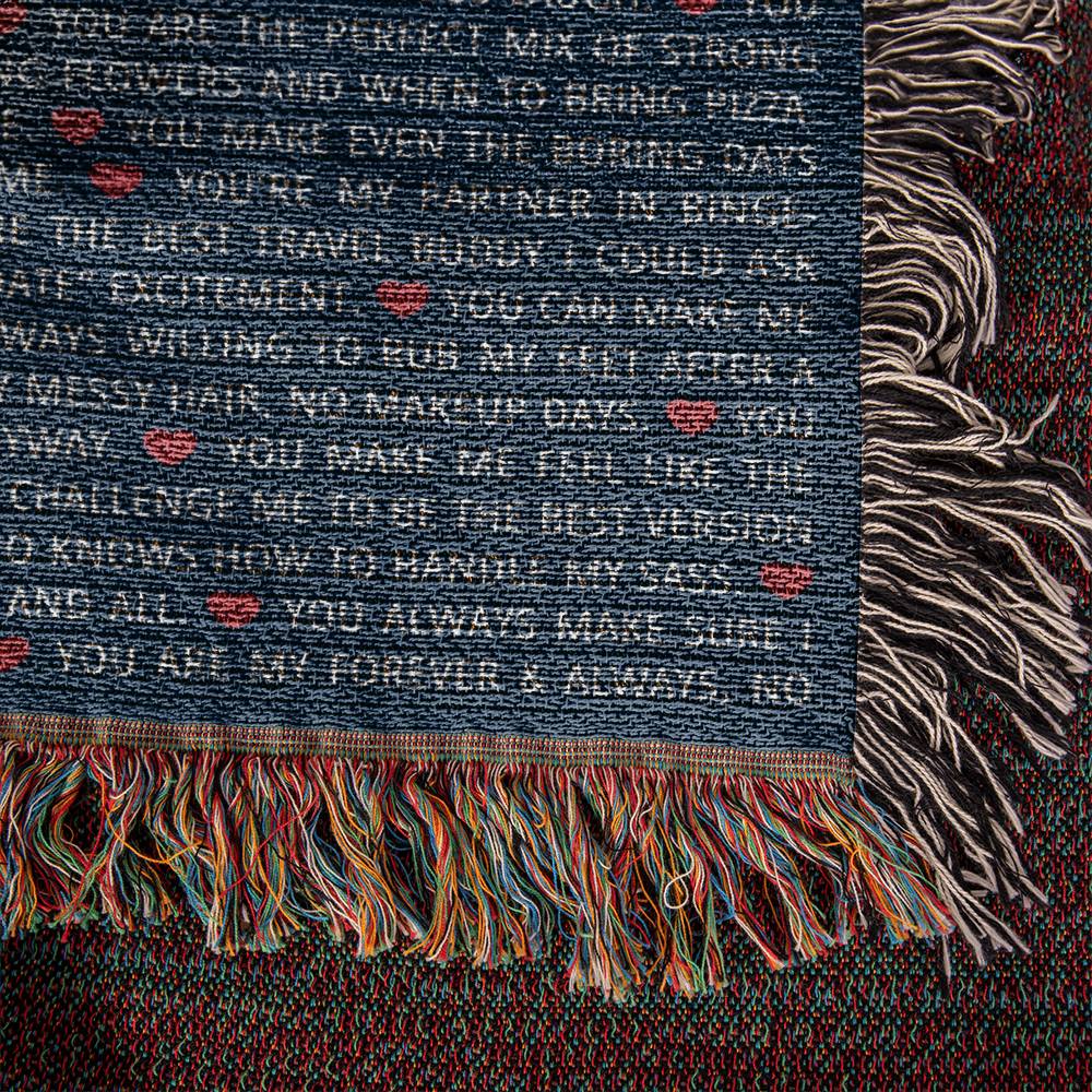 Whether it's a loving list for a husband or a treasured keepsake for a dear friend, this custom cotton blanket is a timeless way to celebrate 50 years of love and memories!