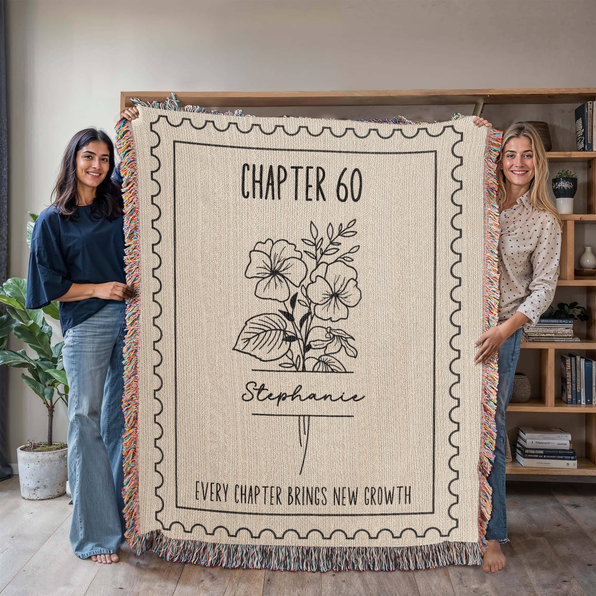 60th Birthday Gift Birth Month Flower Personalized Book Lover Blanket, Warm Soft Blanket For Women, Gift For Bookworm Book Club