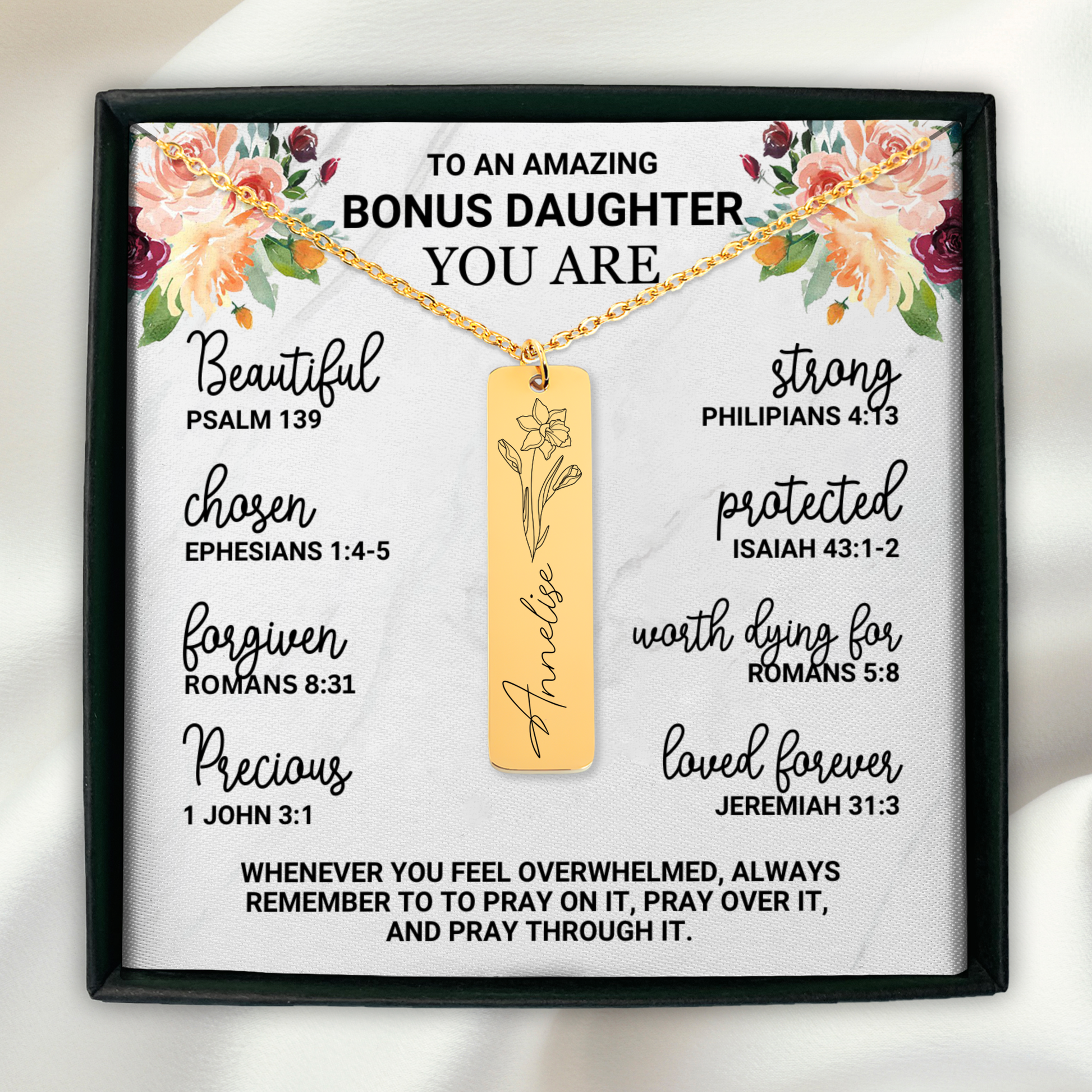 Bonus Daughter Christian Encouragement Gift | Name & Birthflower Necklace