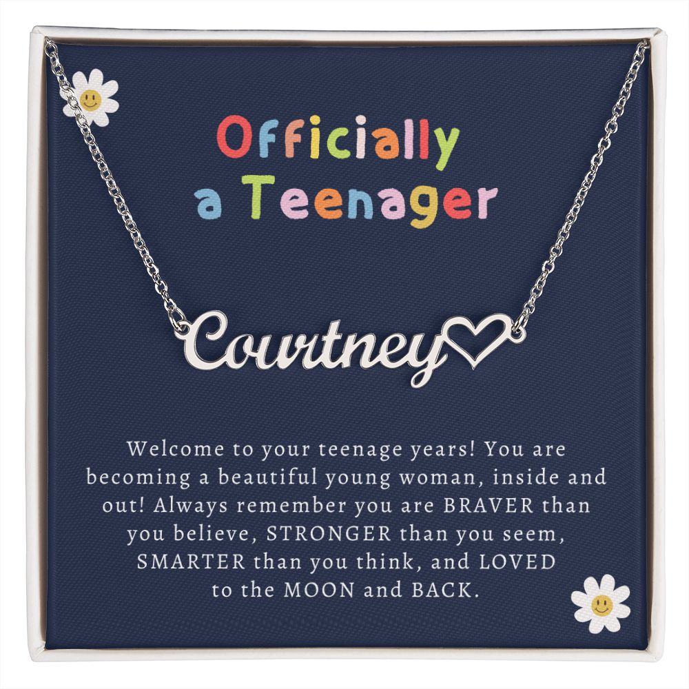 This stylish necklace features a cursive name design and heart symbol suspended on a 16”-18” adjustable cable chain, making it both personal and beautiful! Your necklace will be custom made upon ordering in the name or word of your choice, with up to 10 characters. It's a gift they will surely want to keep close to their heart forever!