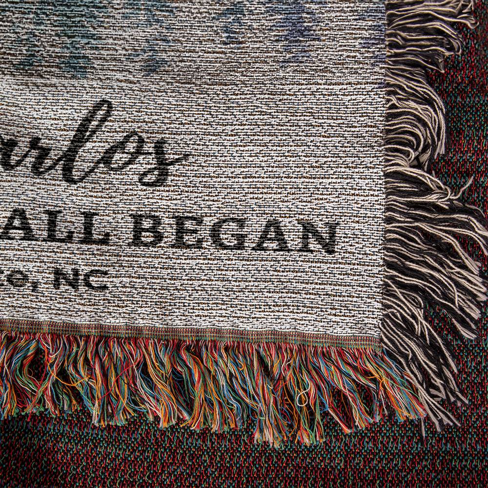 A beautiful personalized gift, which you helped create! This is the perfect sentimental gift. Each blanket is completely unique and made to order. You can expect a vibrantly and professionally woven design, making this a piece that can be treasured for a lifetime.