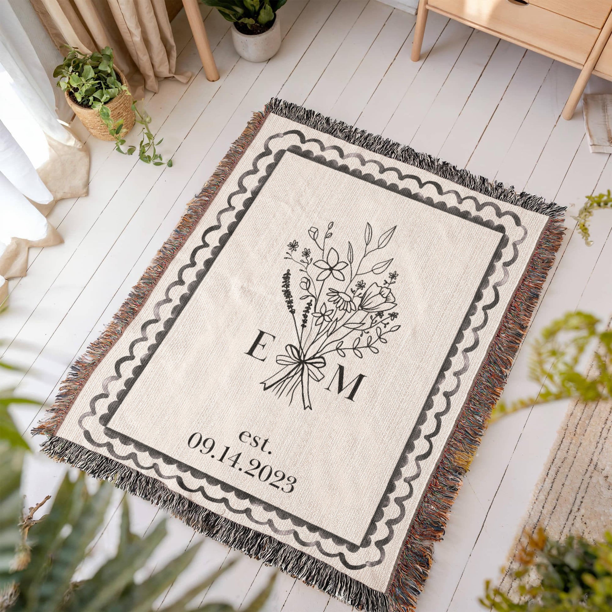 Custom Cotton Anniversary Blanket | Personalised Wedding Throw with Initials & Established Date | 2nd Anniversary Gift for Wife or Couple