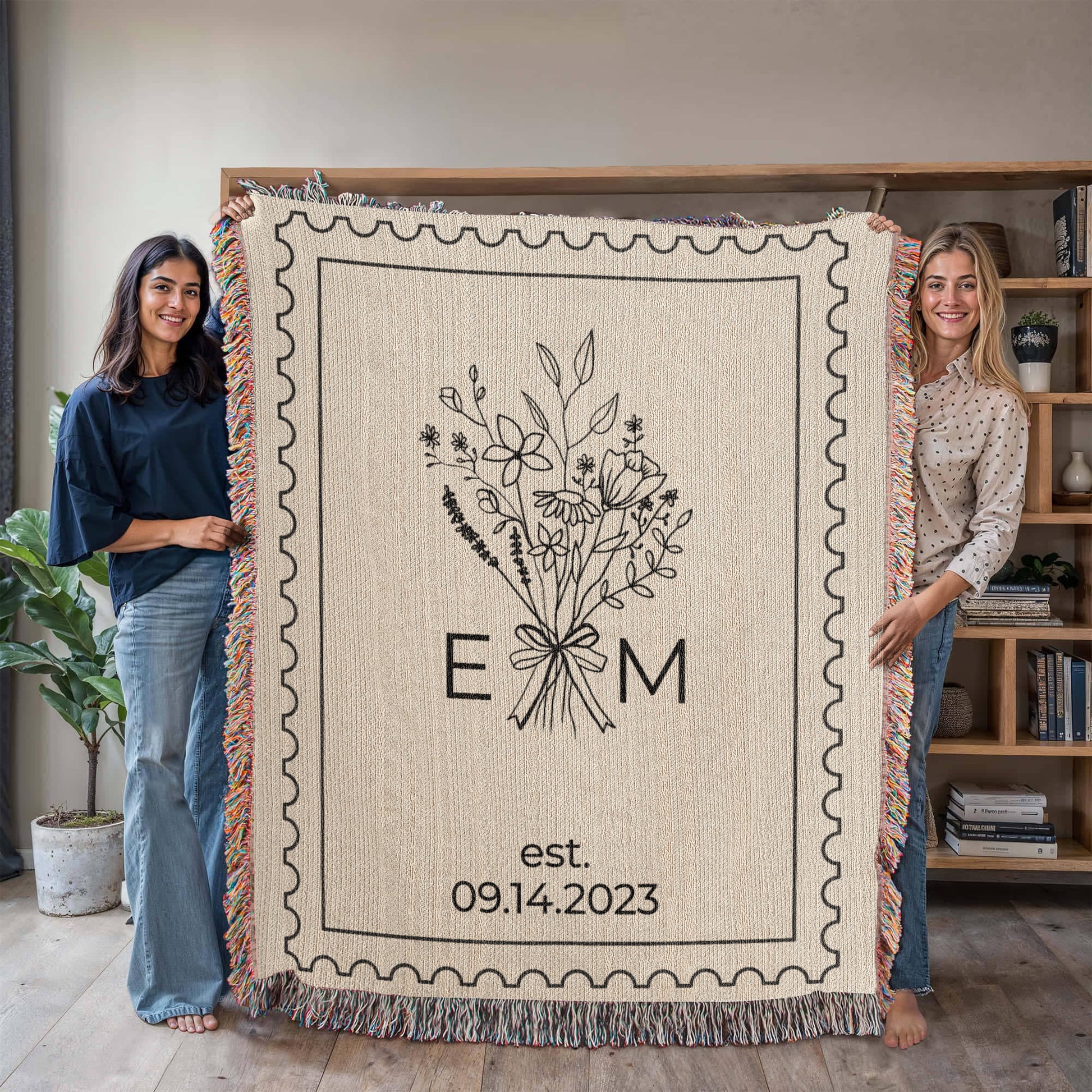 Celebrate love, milestones, and memories with our Personalized Cotton Anniversary Blanket — a timeless keepsake woven from 100% cotton yarn. Thoughtfully designed with initials, floral artwork, and your special established date, this heirloom throw blanket is the perfect way to mark a second anniversary, a wedding gift, or a meaningful present for couples, wives, husbands, girlfriends, or boyfriends.