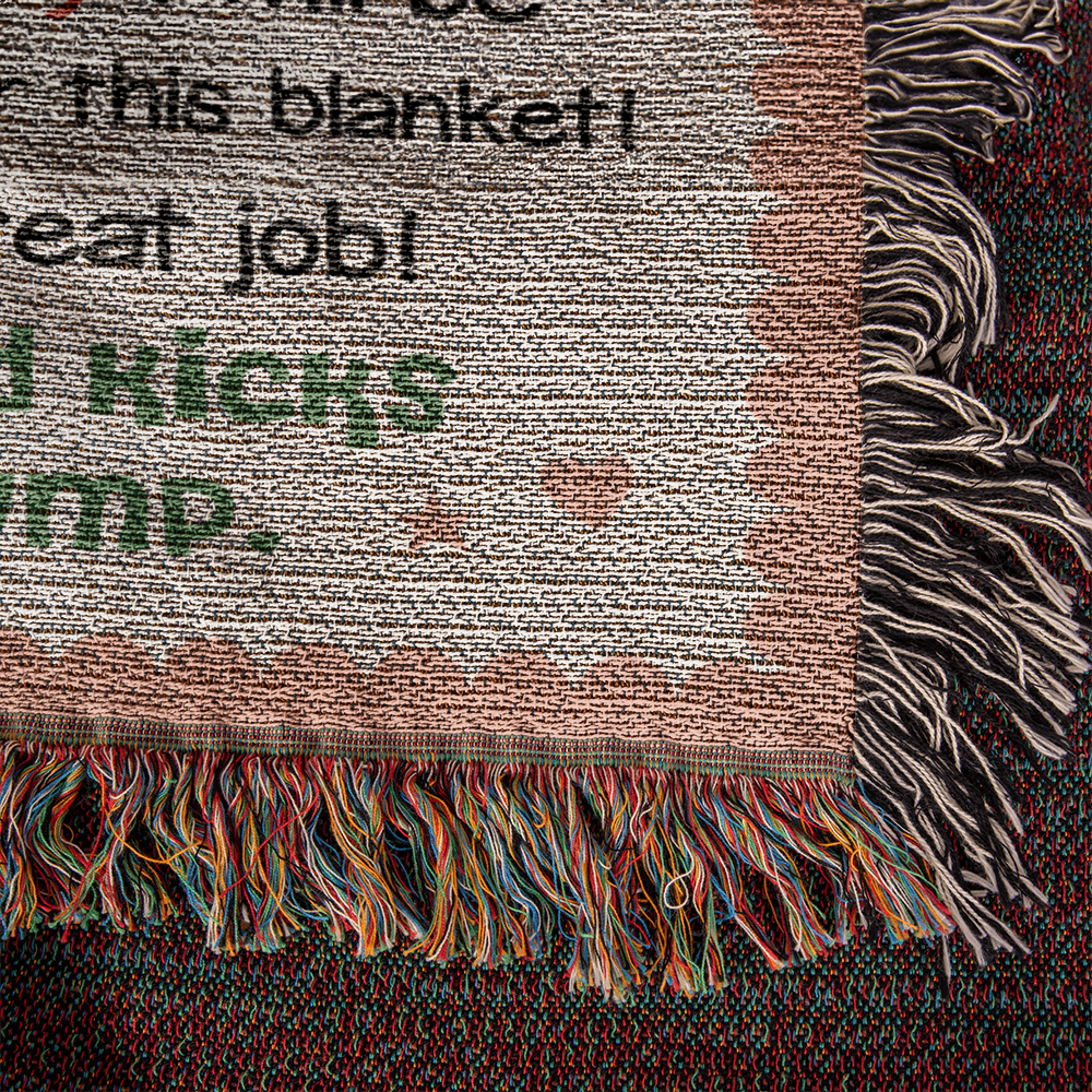 Create a unique keepsake with our Heirloom Artwork Woven Blanket. This custom product is lovingly woven on a loom with cozy 100% cotton yarn. It makes an ideal gift for your beloved partner, family members, or dear friends on special occasions like birthdays, anniversaries, or any event where you want to express your love and appreciation in an unforgettable way.