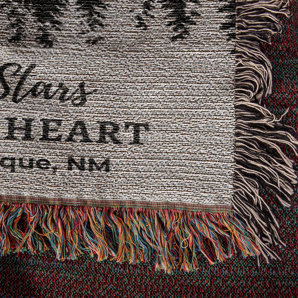 Our Heirloom Woven Blanket is lovingly weaved on a loom with cozy, 100% cotton yarn. Personalized just for you, the custom star map is a glance at the heavens. Capturing the exact way the night stars looked at the location and date of your choice. It's a unique way to remember the special day.