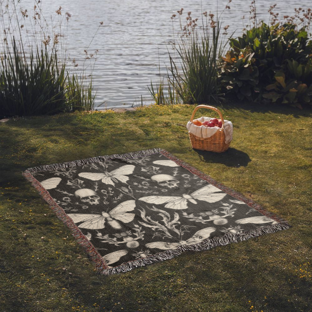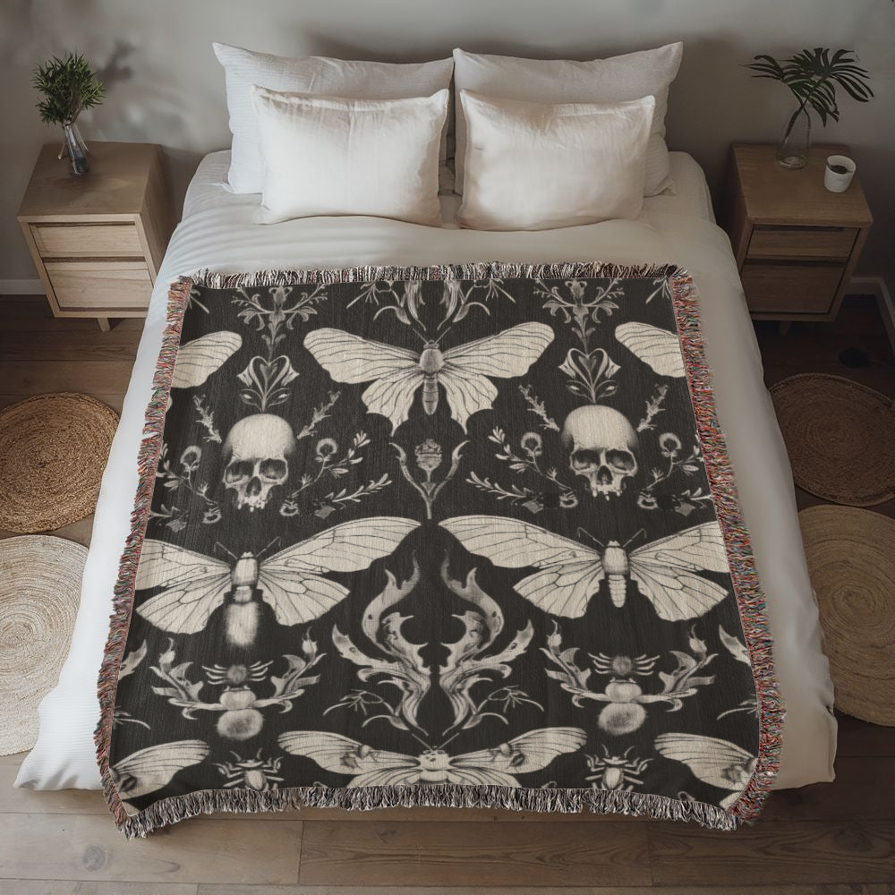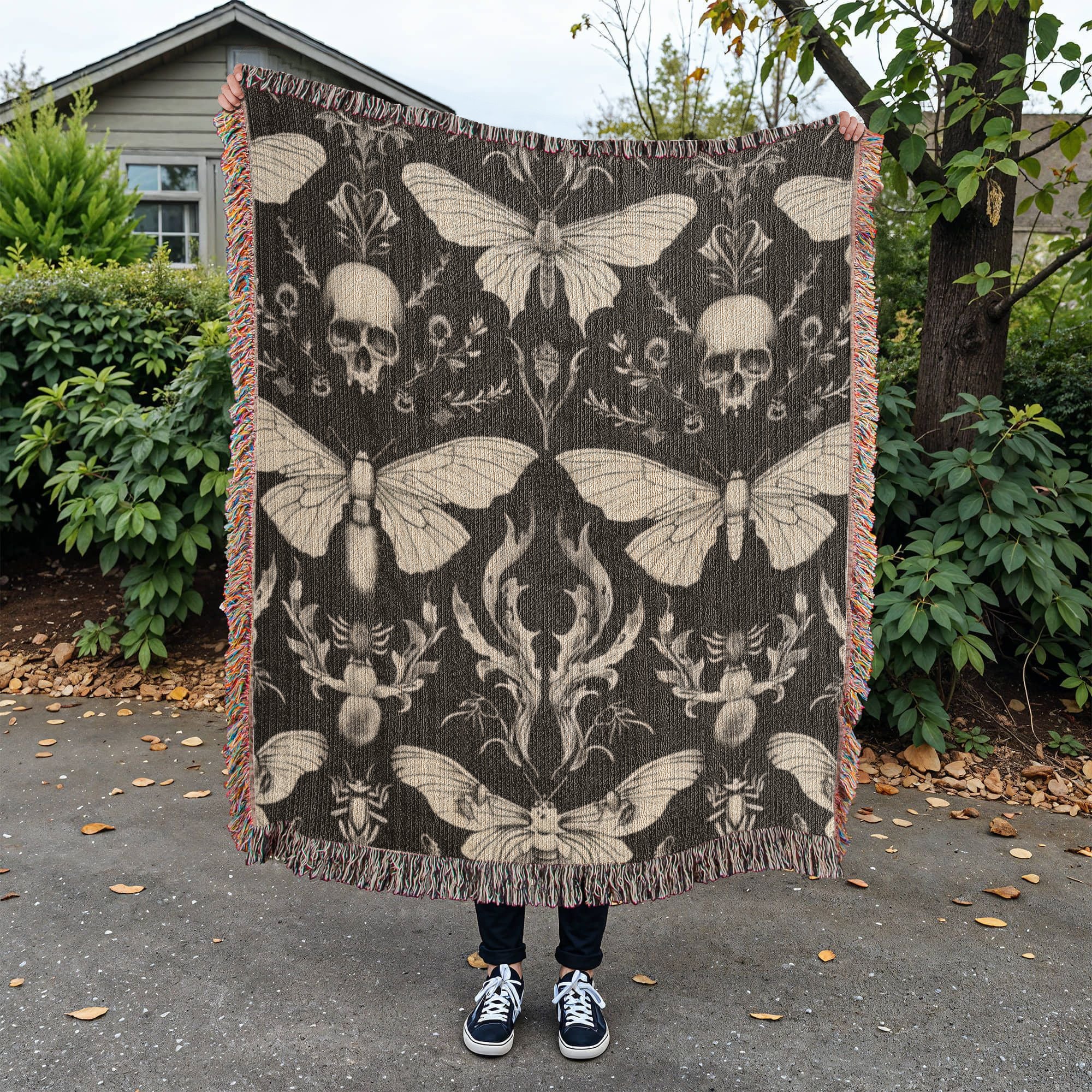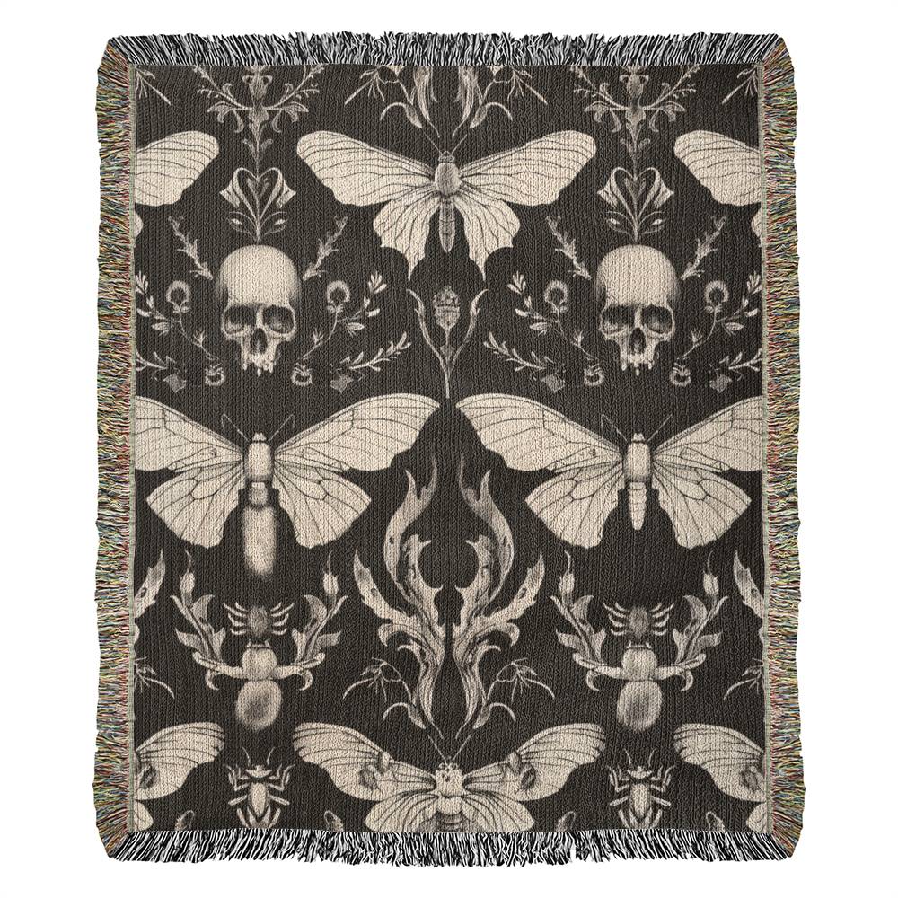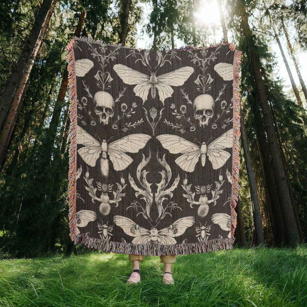 Luna Moths Throw Blanket | 100% Cotton | Jacquard Blanket with Fringed Edge | Tapestry | Woven in the USA