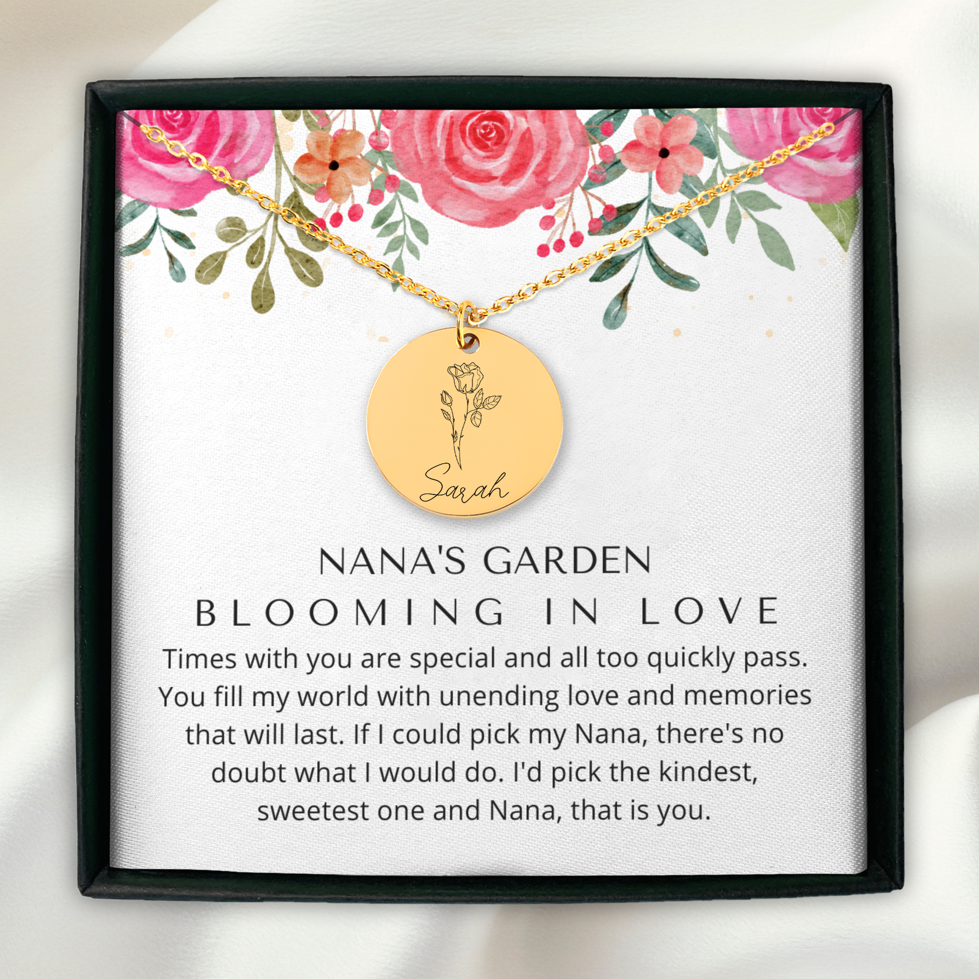 Gift for Nana from Grandchild | Name & Birth Flower Necklace