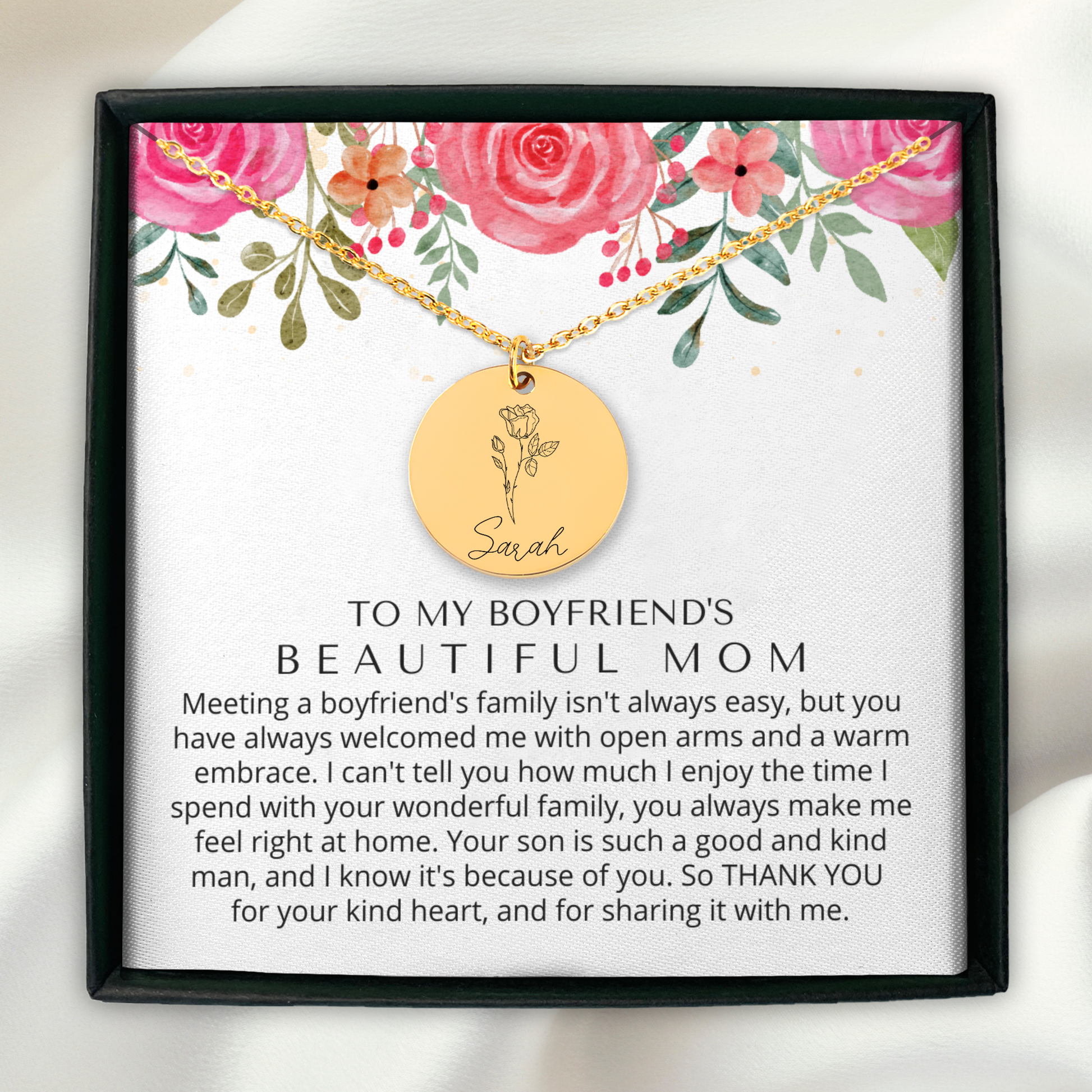 To My Boyfriend's Mom Gift for Her | Personalized Name & Birth Flower Necklace