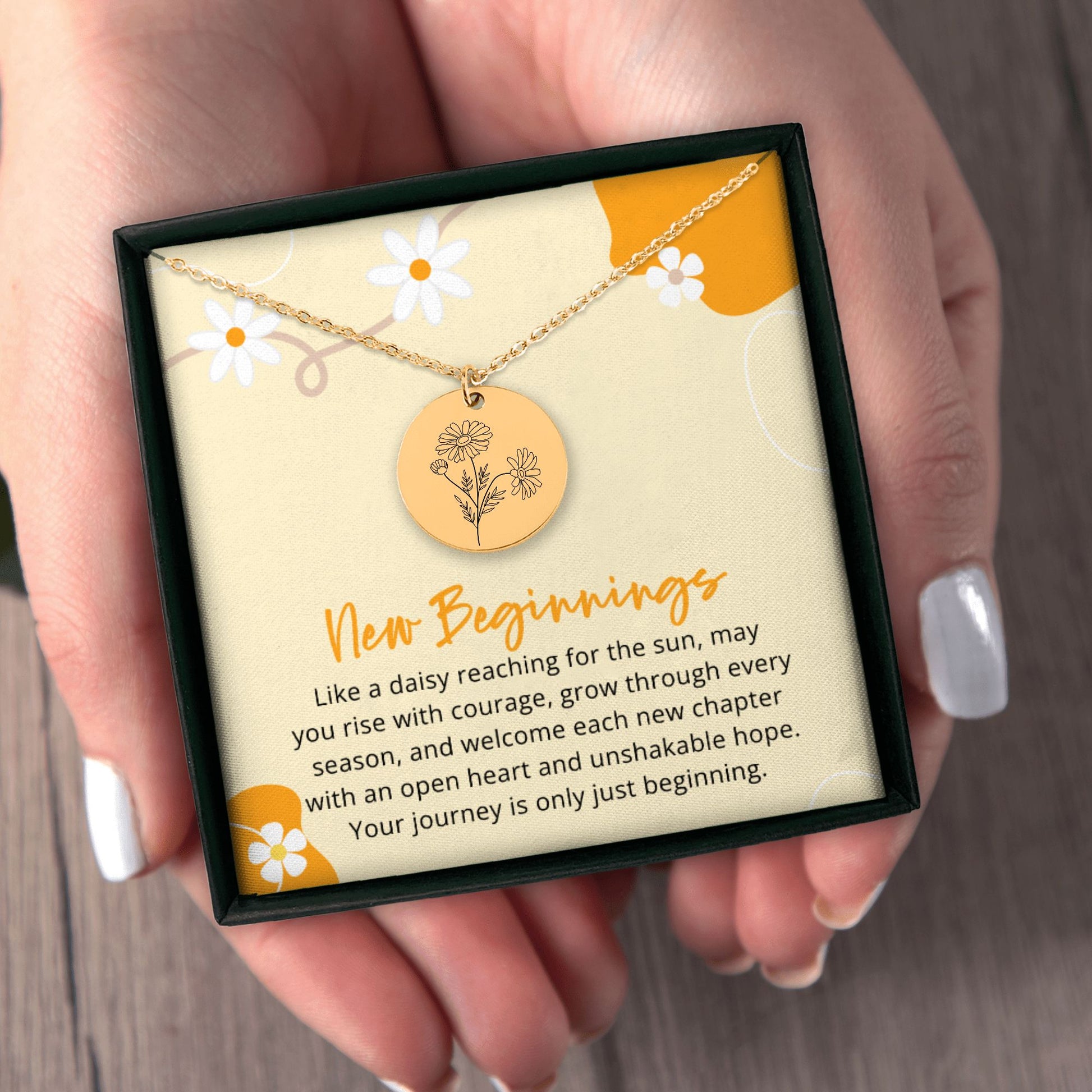 🌼 New Beginnings Daisy Necklace – Personalized Back Engraved Gift for a Fresh Start