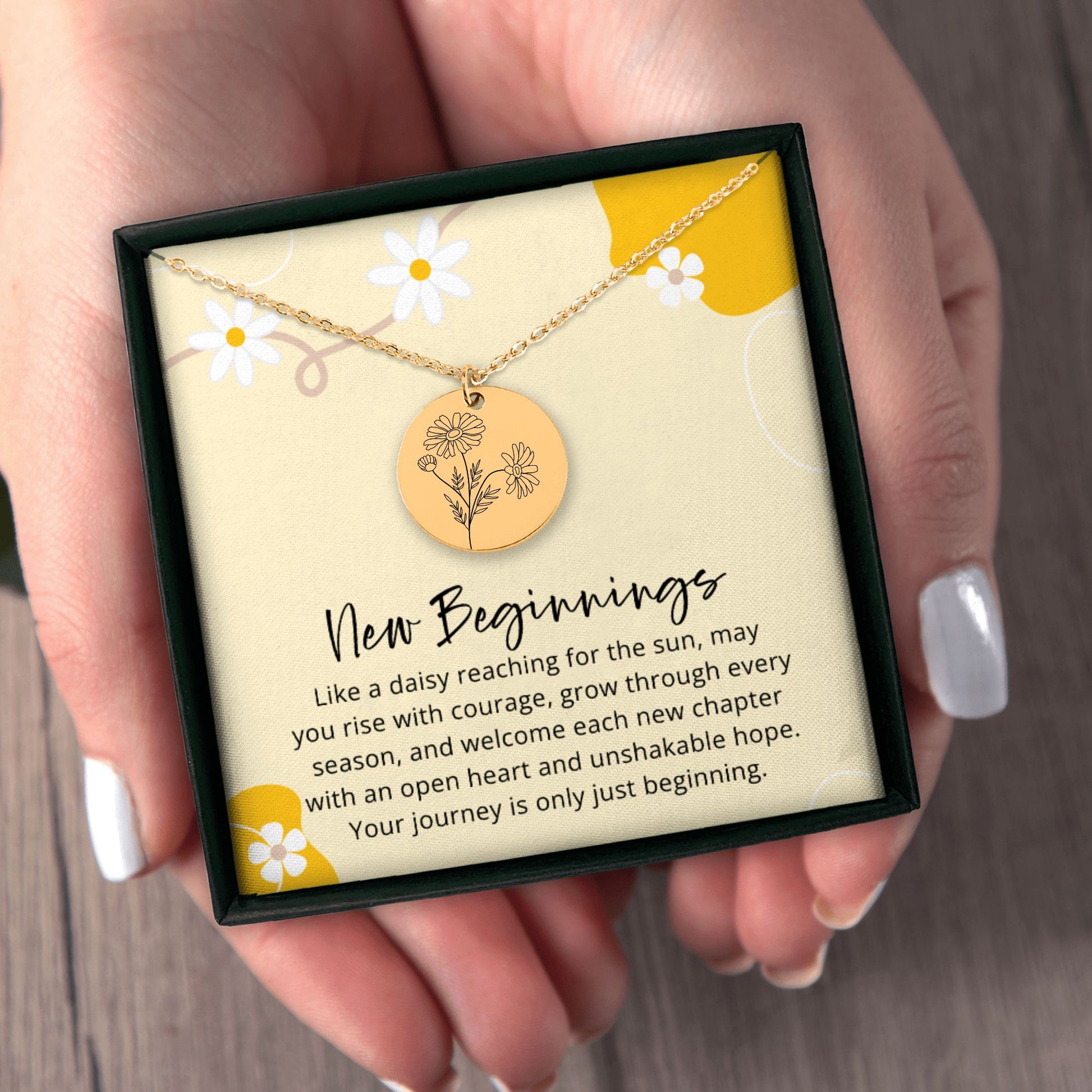 🌼 New Beginnings Daisy Necklace – Personalized Back Engraved Gift for a Fresh Start