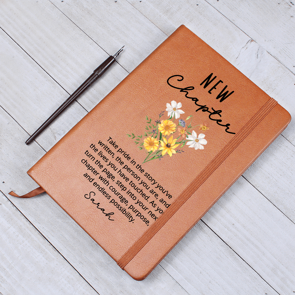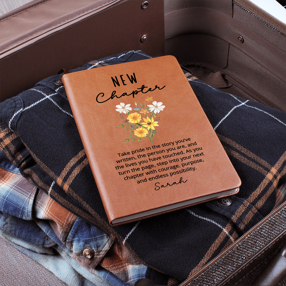 Celebrate fresh starts and unforgettable goodbyes with this beautifully crafted New Chapter vegan leather journal. Whether it’s a retirement, graduation, new job, or housewarming gift, this personalized keepsake offers encouragement, purpose, and endless possibility.