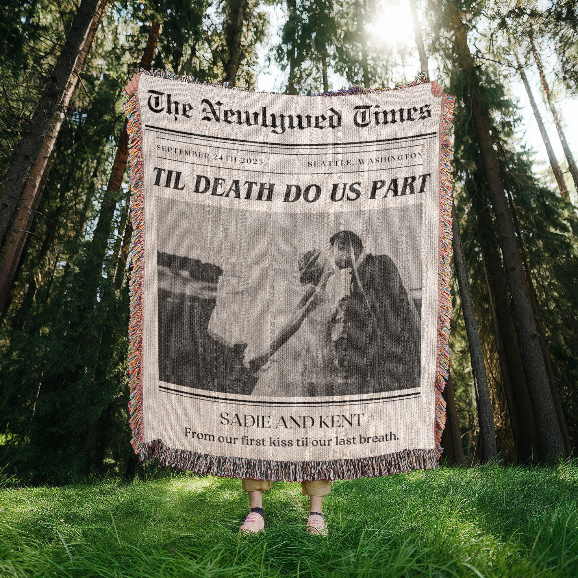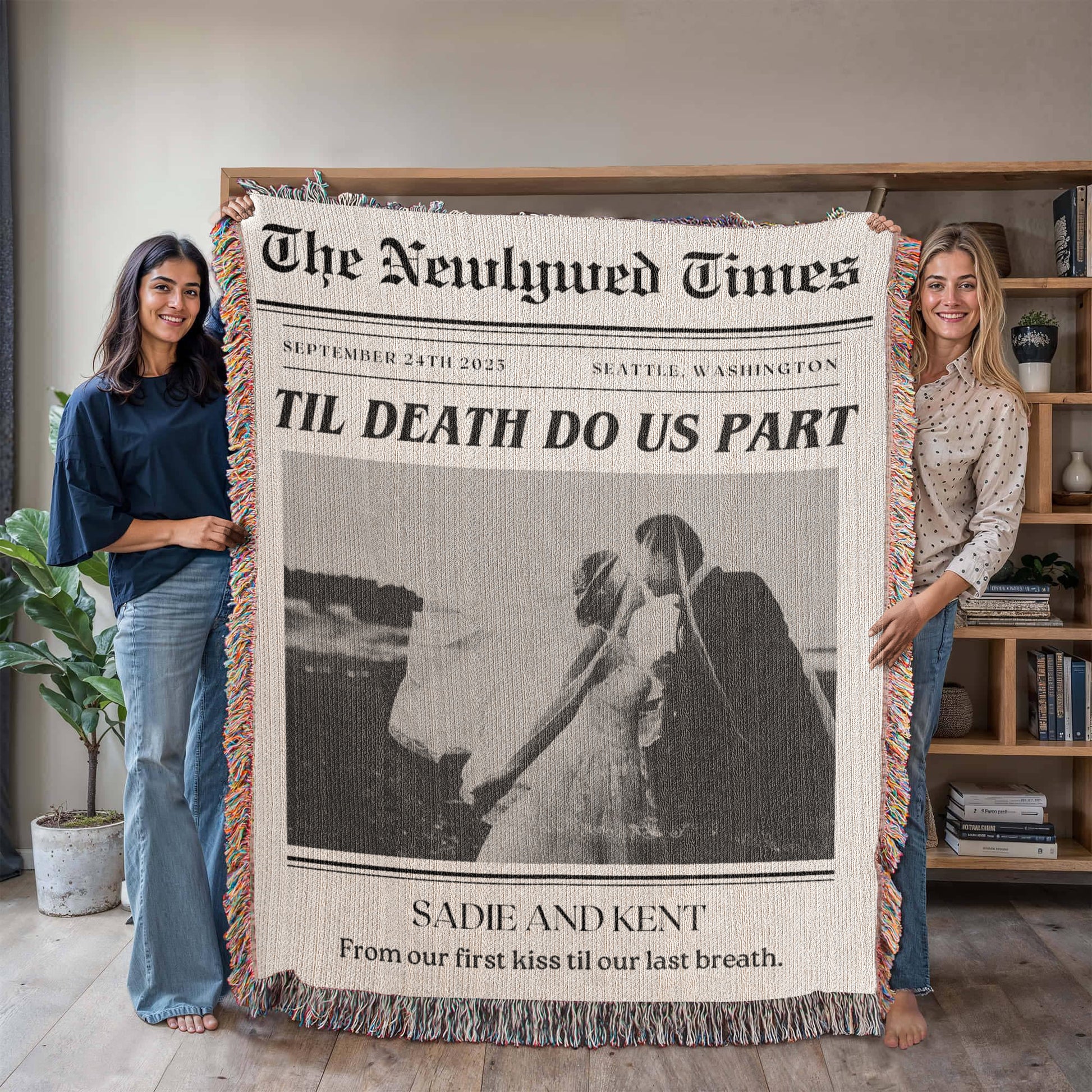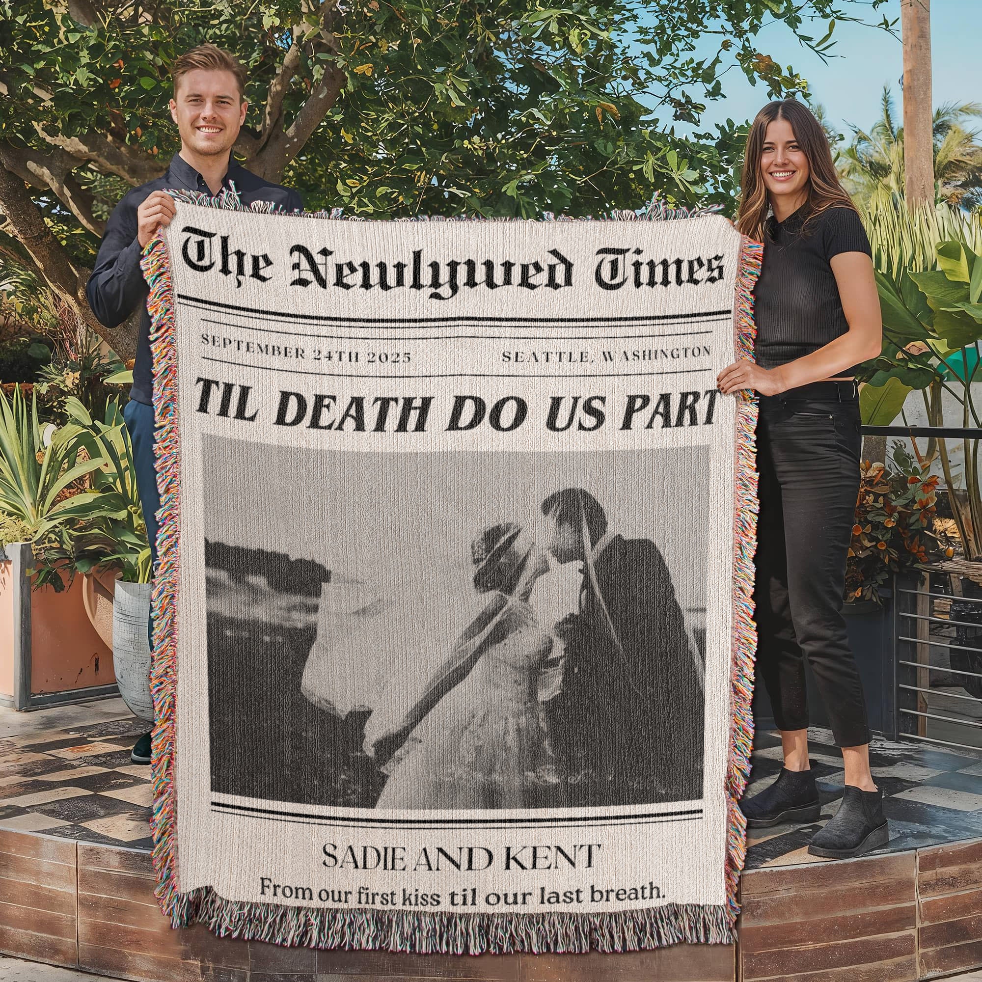 Newlywed Times Newspaper Woven Blanket – A Unique & Personalized Wedding Gift for Couples