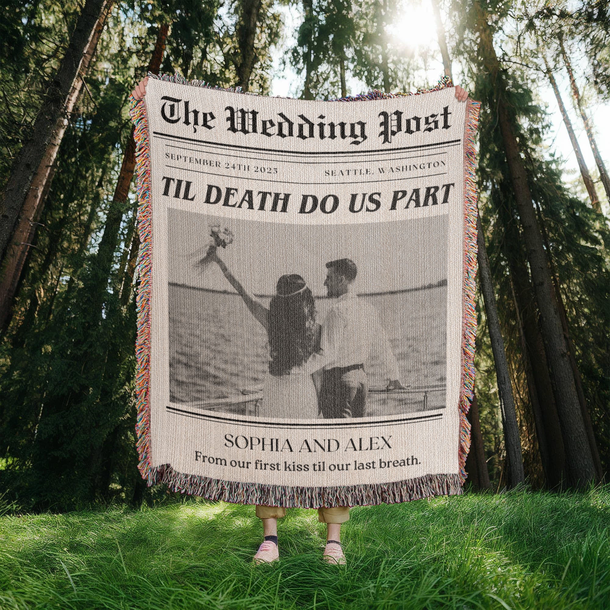 Newlywed Times Newspaper Woven Blanket – A Unique & Personalized Wedding Gift for Couples