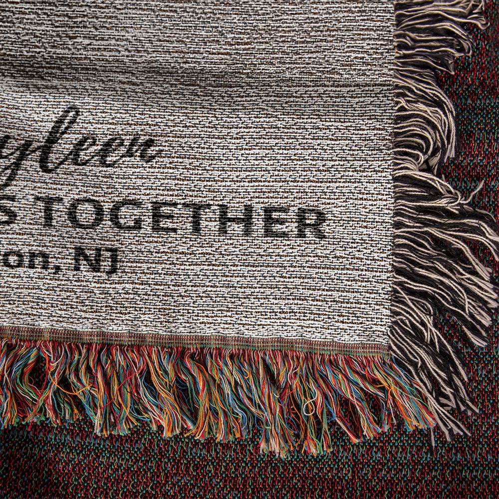 A beautiful personalized gift, which you helped create! This is the perfect sentimental gift. Each blanket is completely unique and made to order. You can expect a vibrantly and professionally woven design, making this a piece that can be treasured for a lifetime.