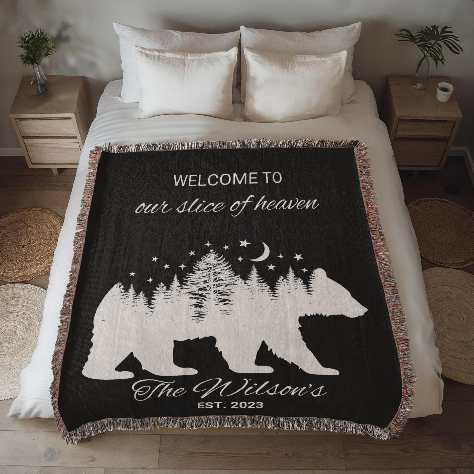 Personalized Bear & Forest Blanket | Romantic Hunter Gift for Him | Rustic Cabin Decor | Valentine’s Day, Wedding, Anniversary, or Birthday Gift