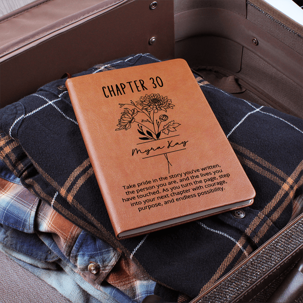 Personalized Birth Flower 30th Birthday Journal, Custom Name A5 Vegan Leather Notebook, Turning Thirty Gift for Women Mom Sister Best Friend Bestie
