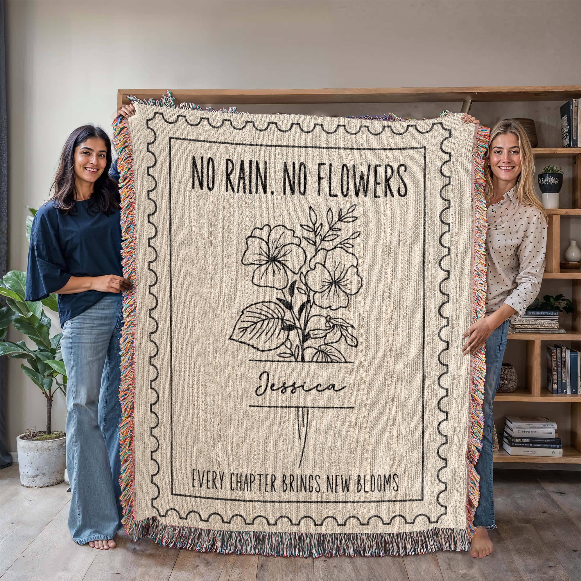 Personalized Birth Flower Cotton Woven Comfort Blanket: Birth Month Flower Gifts for Her