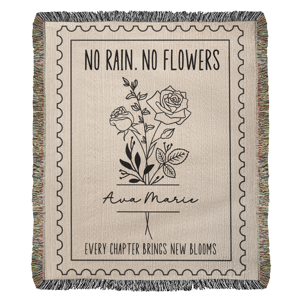 Personalized Birth Flower Gift | Custom Name Woven Blanket Birthday Gift For Her