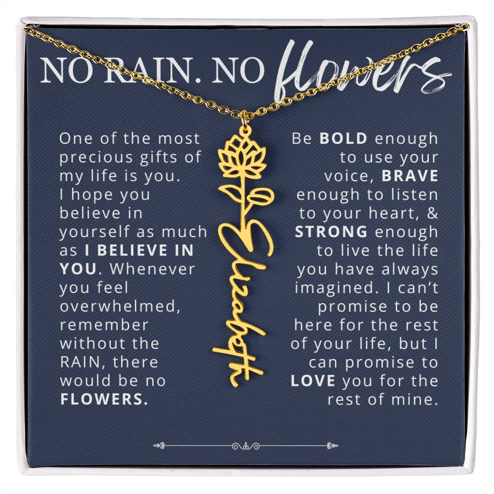 Need a gift that's as unique as she is? Then look no further than our Flower Name Necklace! With a customizable birth flower design, this necklace is a meaningful addition to any jewelry collection. Whether you're dressing up for a special occasion or simply want to add some flair to your everyday look, this necklace is perfect for your special someone. Handcrafted from high-quality materials, it is both stylish and durable. So why wait? Personalize your own floral name necklace today!