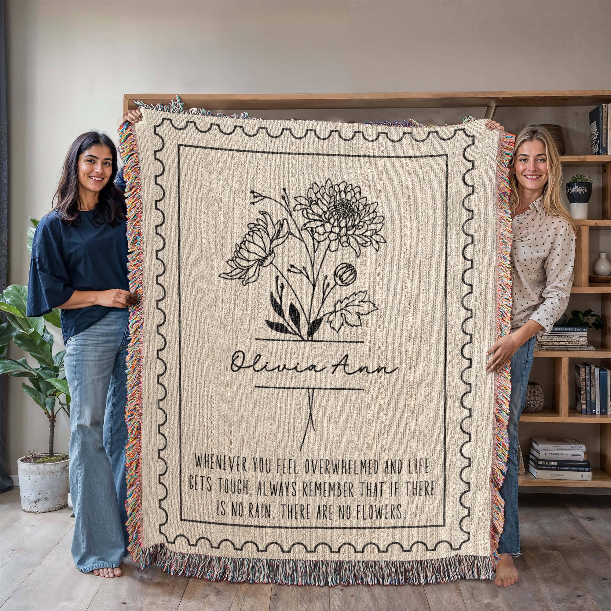 Personalized Birth Flower & Name Woven Blanket | 100% Cotton Throw
