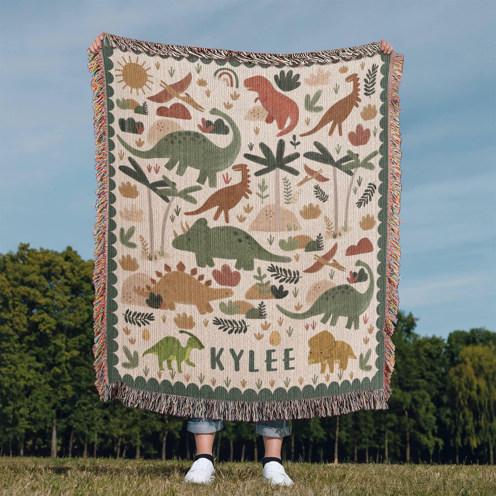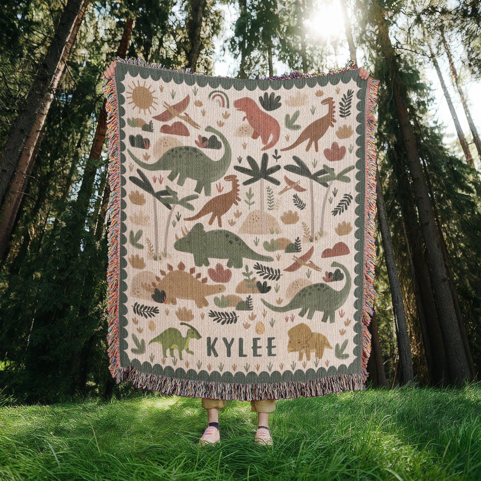 Personalized Dinosaur Blanket: Custom Name Kids Throw, Gifts for Him or Her, Baby Shower Gift for New Parents