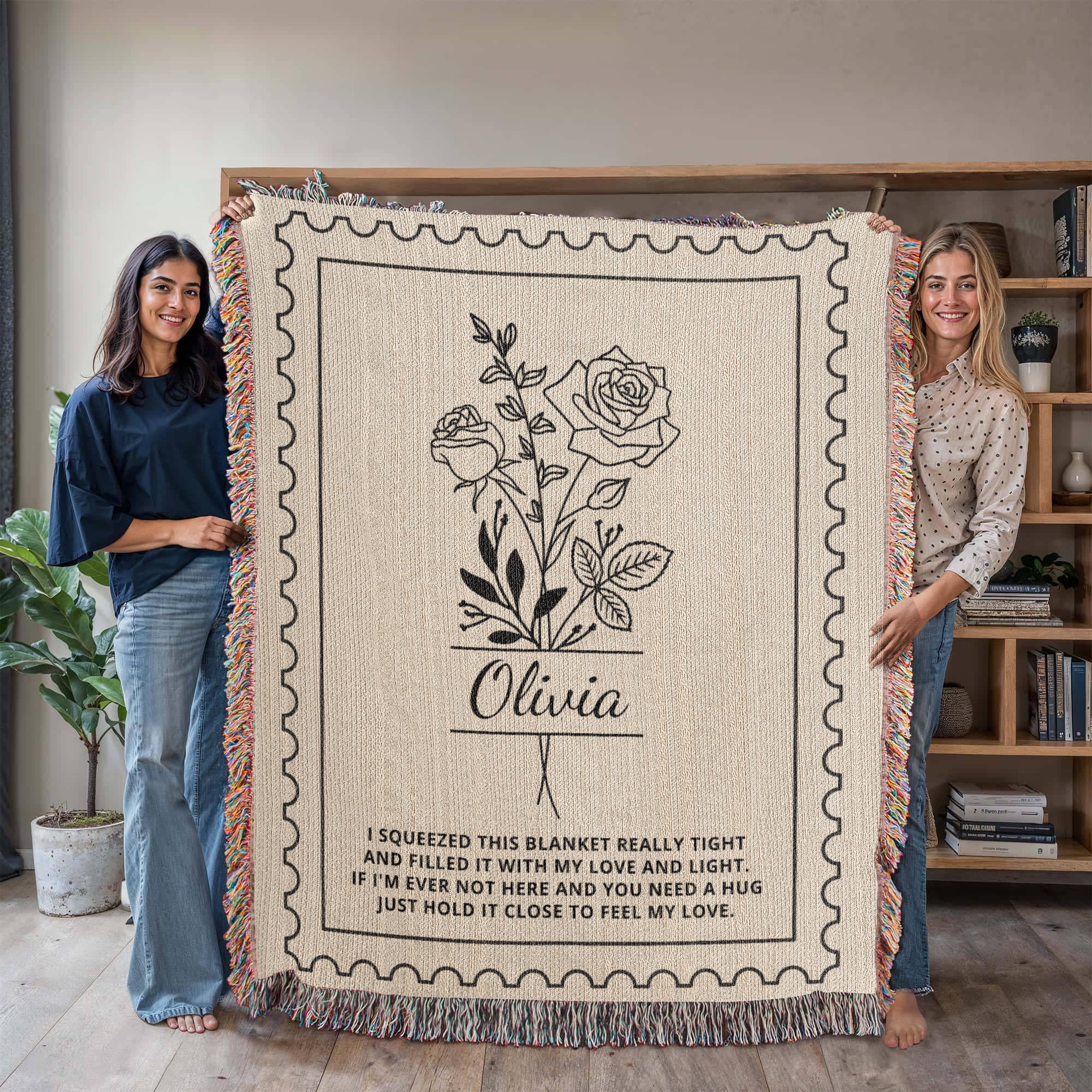 Personalized Name Birth Flower Blanket | Custom Woven Comfort Throw Memory Gift for Sympathy, Bereavement, or Long Distance Love