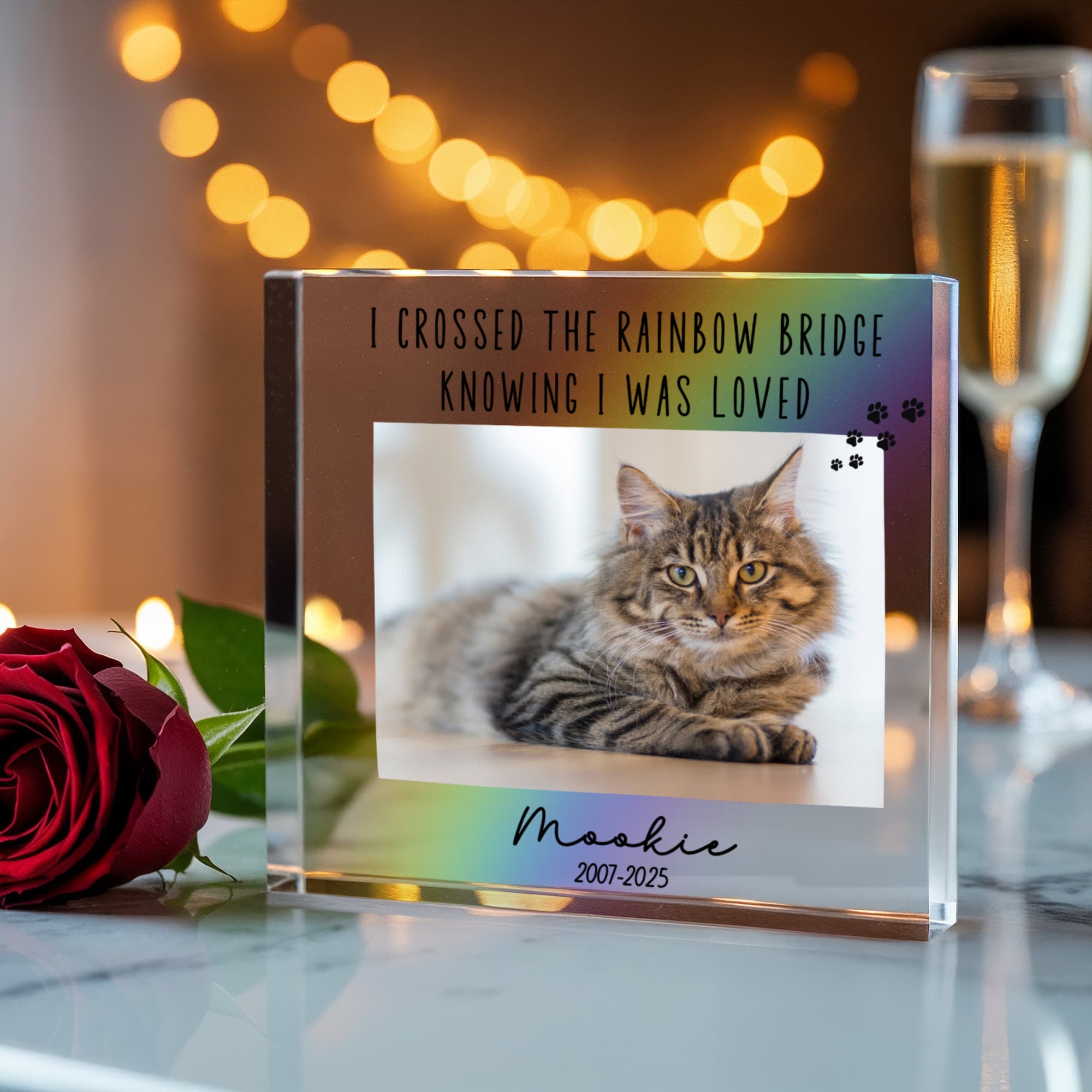Personalized Pet Memorial Gift - Acrylic Photo Block - Cat or Dog Loss Gift, Condolence Sympathy Rainbow Bridge
