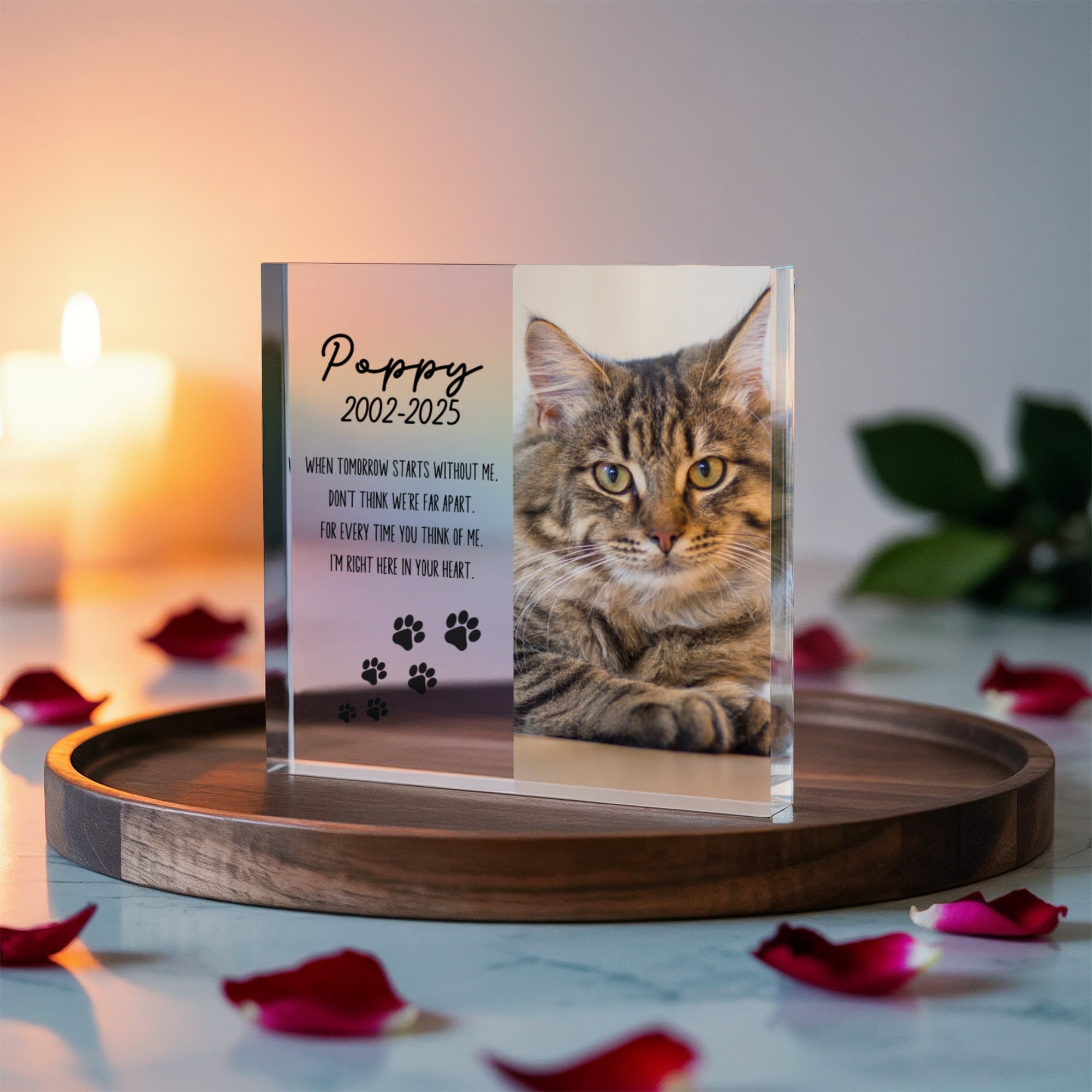 Personalized Pet Memorial Gift | Custom Pet Remembrance Acrylic Block With Photo, Cat or Dog Sympathy Gift