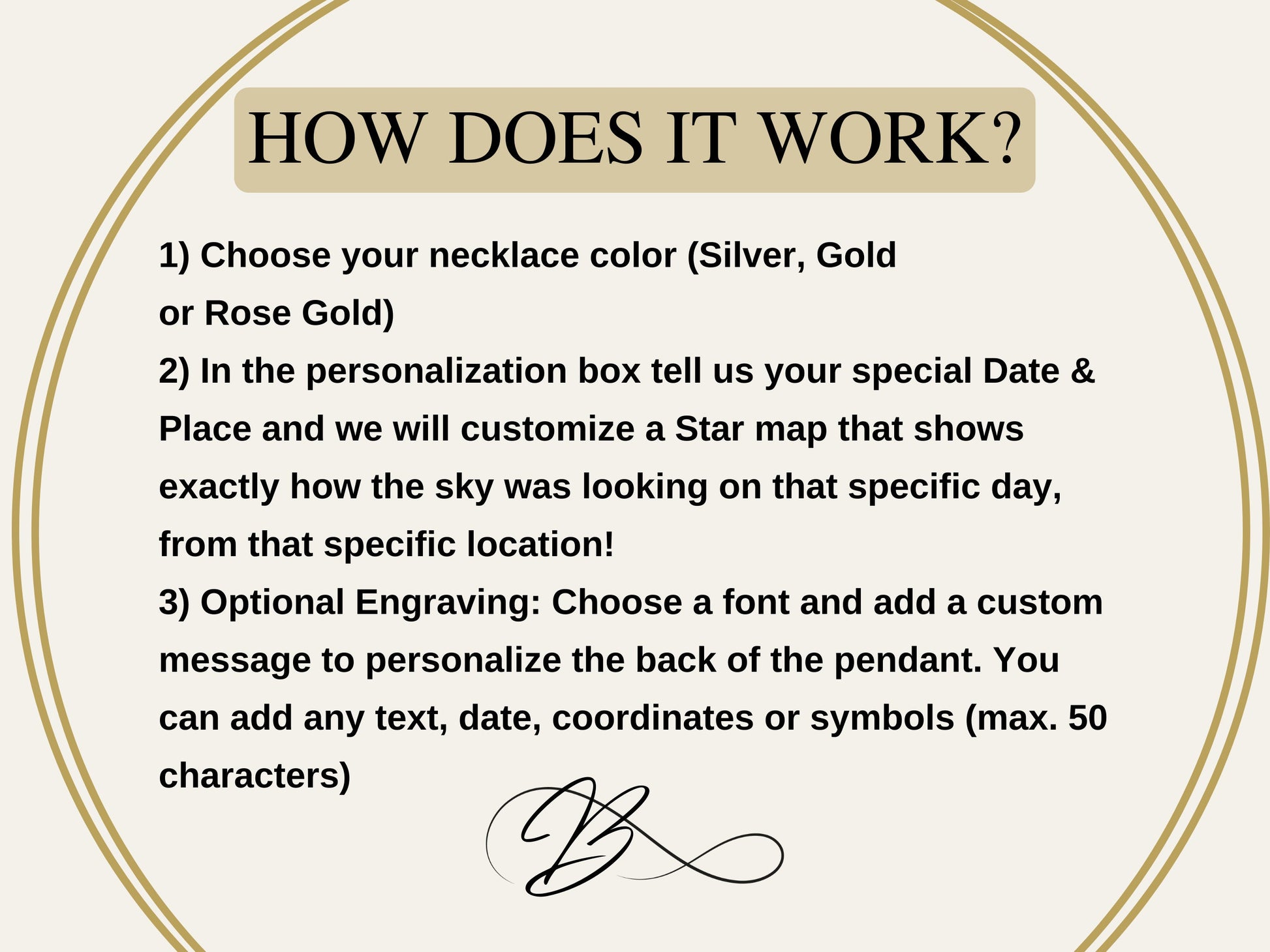 The custom star map is a glance at the heavens. Capturing the exact way the night stars looked at the location and date of your choice. It's a unique way to remember the special day she was born. Imagine her face when she opens this gift, sees the personalized necklace and reads the heartfelt message...she'll melt!