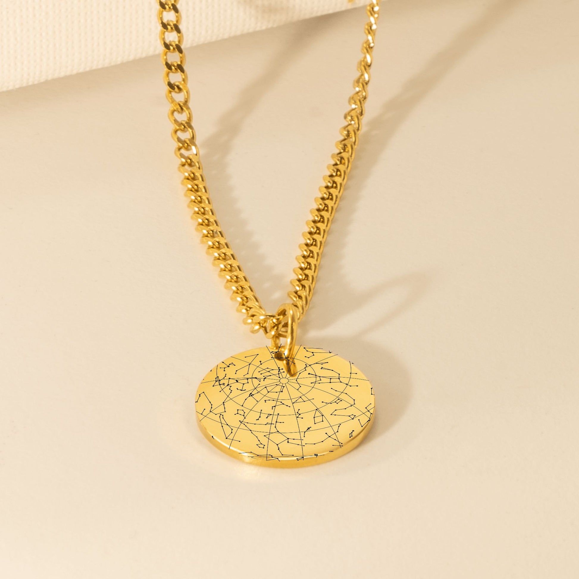 Celebrate your special moments with this Custom Star Map By Date Chain – the perfect keepsake for anniversaries, birthdays, engagements, weddings, or Christmas. Featuring a customizable star map pendant that captures the night sky of your chosen date and location, this chain is designed to make memories last forever.