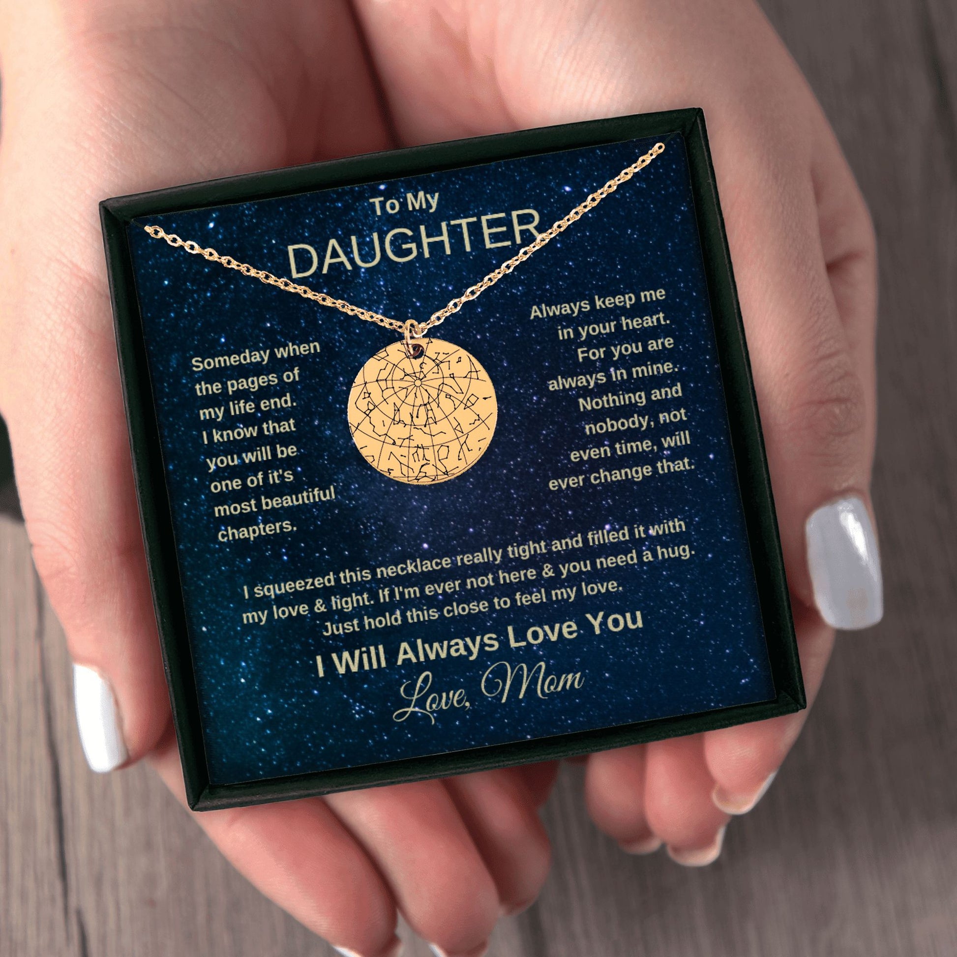 More than just a necklace…eternalize a special moment in your life with a custom star map necklace. Was it the day you met your soul-mate, the day you passed an important exam, the birth of a child or the day you realized your world has changed? Simply add a date and a place, and our designers will customize a star map that shows exactly how the sky was looking on that specific day, from that specific place. Optionally, you can choose to give the necklace an even more personal touch by adding a custom message or coordinates on the back. This necklace also makes the perfect gift for anniversaries, birthdays, couples & more.