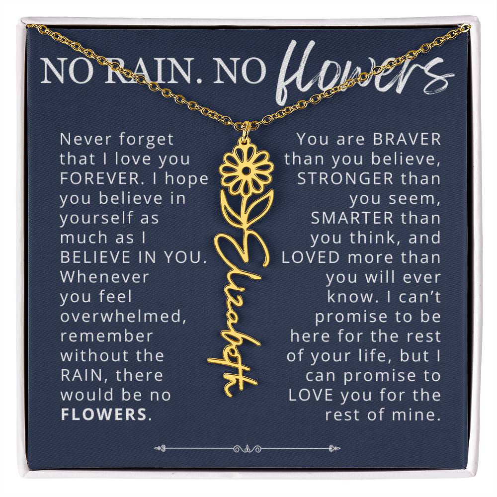 To My Daughter No Rain No Flowers Custom Birth Flower Name Necklace
