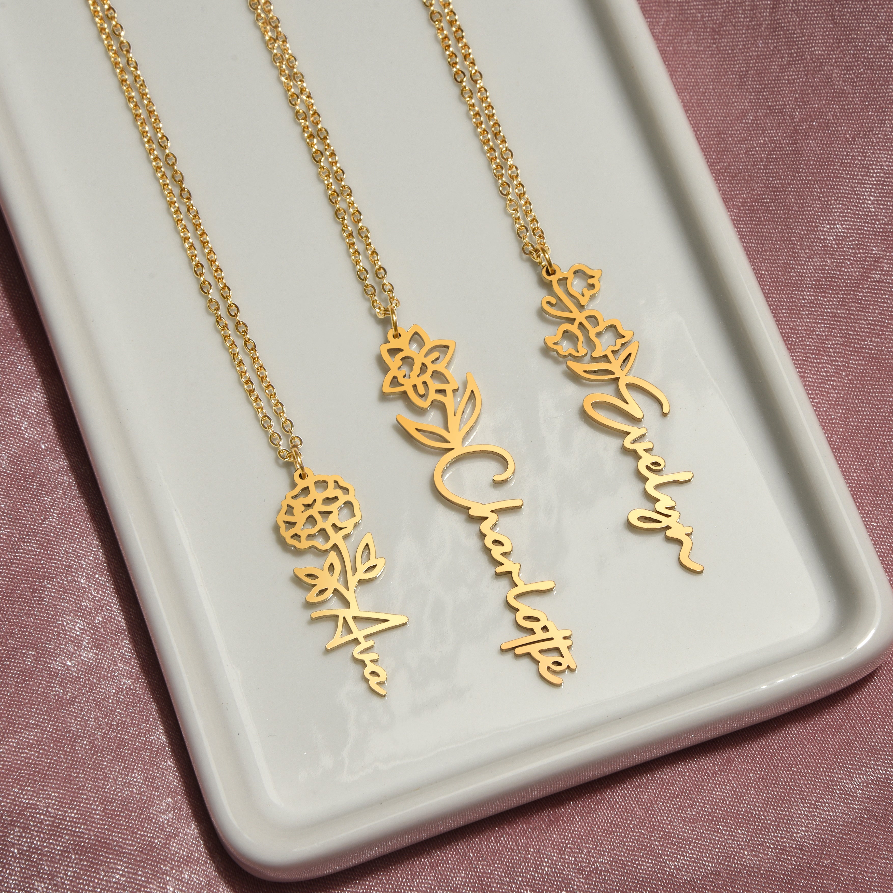 Celebrate the special bond with your granddaughters through the beauty of nature and personalization. Our Personalized Birth Flower Name Necklace is a meaningful keepsake, delicately crafted to feature each granddaughter’s birth flower alongside her name. This unique piece is not only a stunning accessory but also a heartfelt reminder of your love and connection.