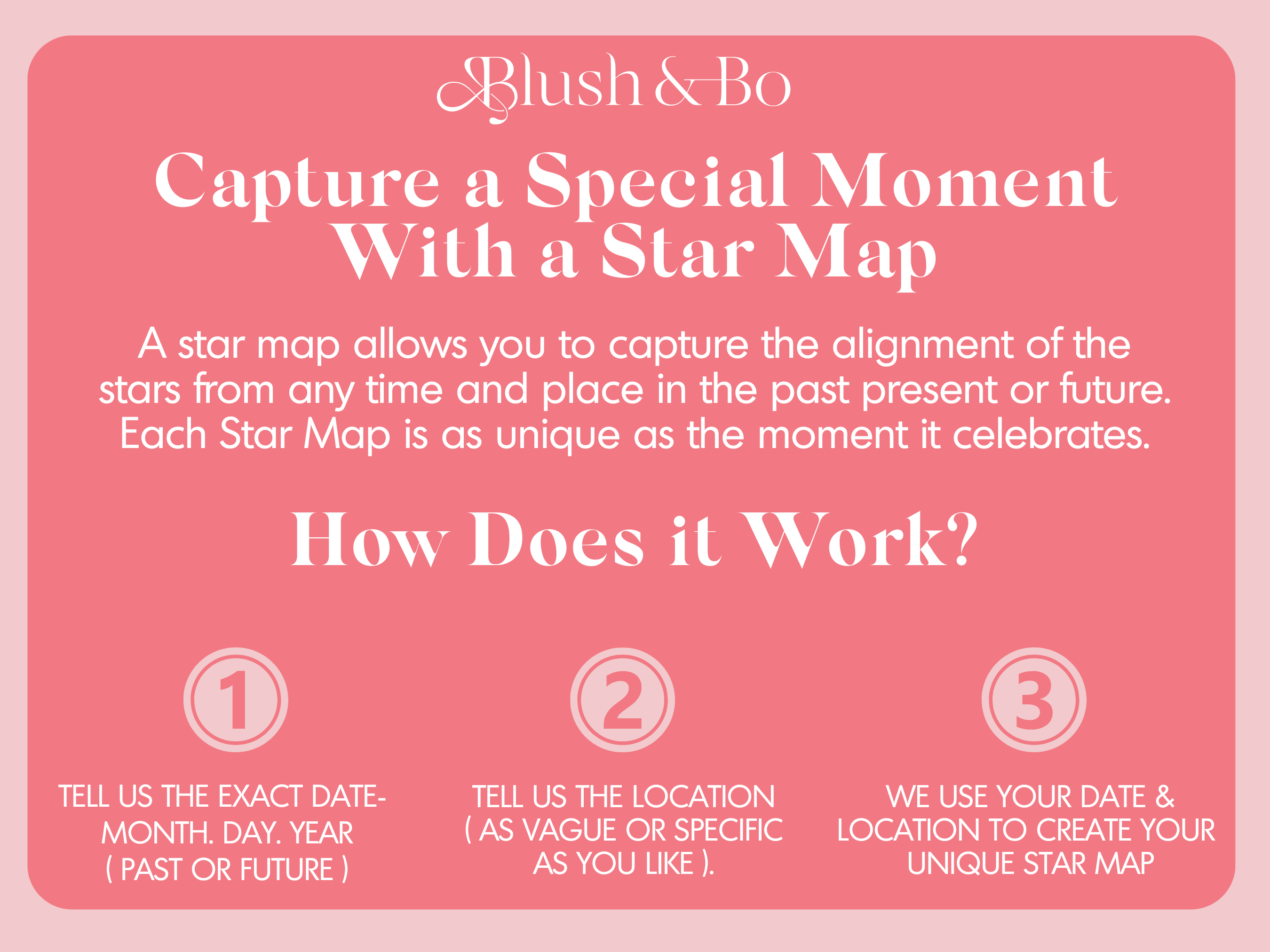 Just tell us your special Date & Place and we will use that to create a personalized star map. The custom star map is a glance at the heavens. Capturing the exact way the night stars looked at the location and date of your choice. It's a unique way to remember the special day. Imagine their face when they open this gift, see the personalized journal and read the heartfelt message...they'll melt!