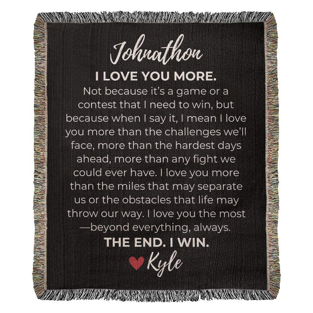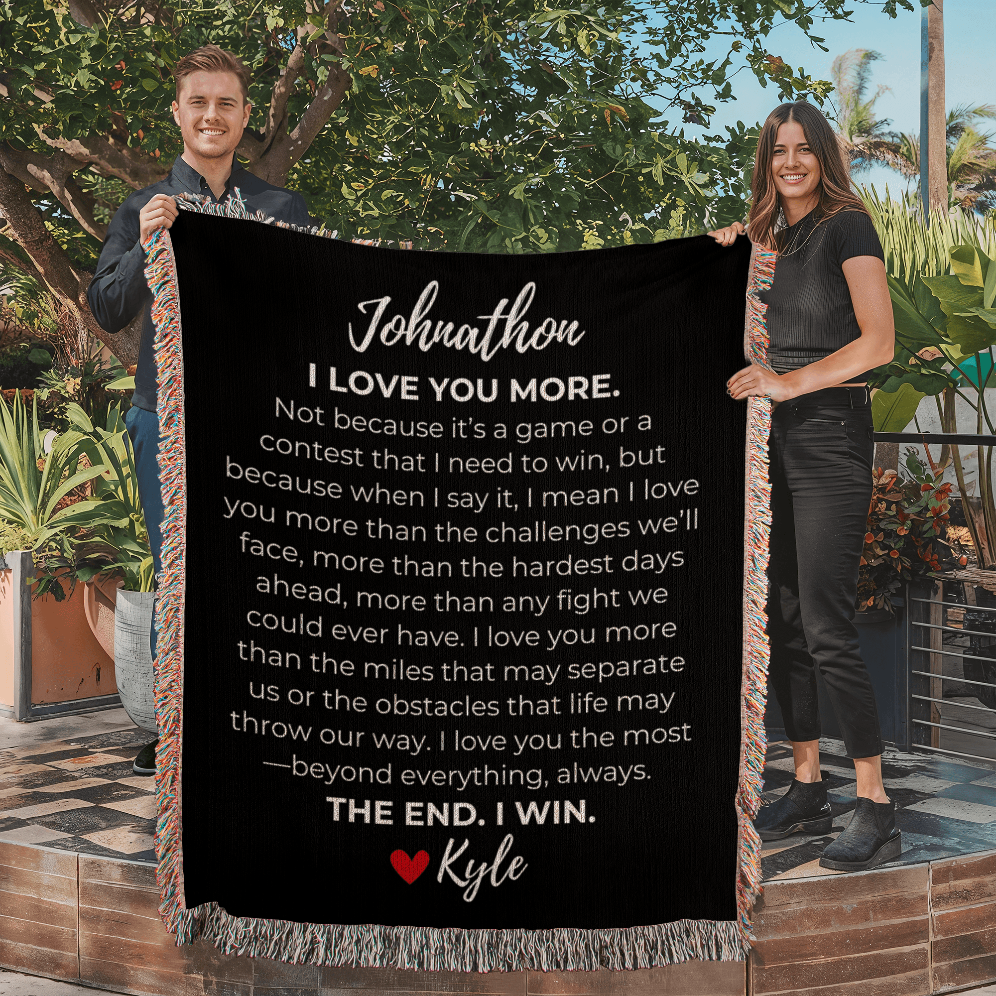 Make your special moments unforgettable with the "I LOVE YOU MORE" Personalized Cotton Anniversary Gift Blanket. Crafted from 100% cotton yarn with vibrant, colorful fringe, this cozy blanket measures 60" (1.5m) in height by 50" (1.3m) in width, perfect for celebrating your love. Personalize it with your names—simply tell us the names in the personalization box for a truly unique and heartfelt touch. Ideal as a gift for wives, husbands, girlfriends, or boyfriends, it’s perfect for 1st or 2nd anniversaries, Valentine's Day, or any special occasion. Please note that actual product colors may vary from mockups due to yarn color differences. Each order is lovingly packaged and ready to be cherished for a lifetime.